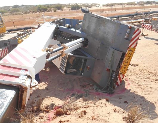 - The crane was being operated outside of its design criteria, changing its centre of gravity and destabilising the machine: